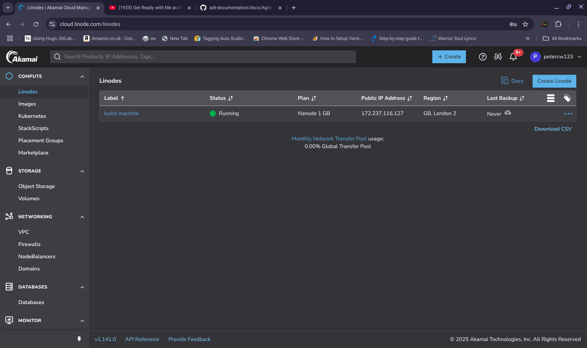 Once the build is completed (or earlier if you like, once the build machine is pingable) you can get the IP address of your build machine through the Linode GUI system (in my case: 172.237.116.127)