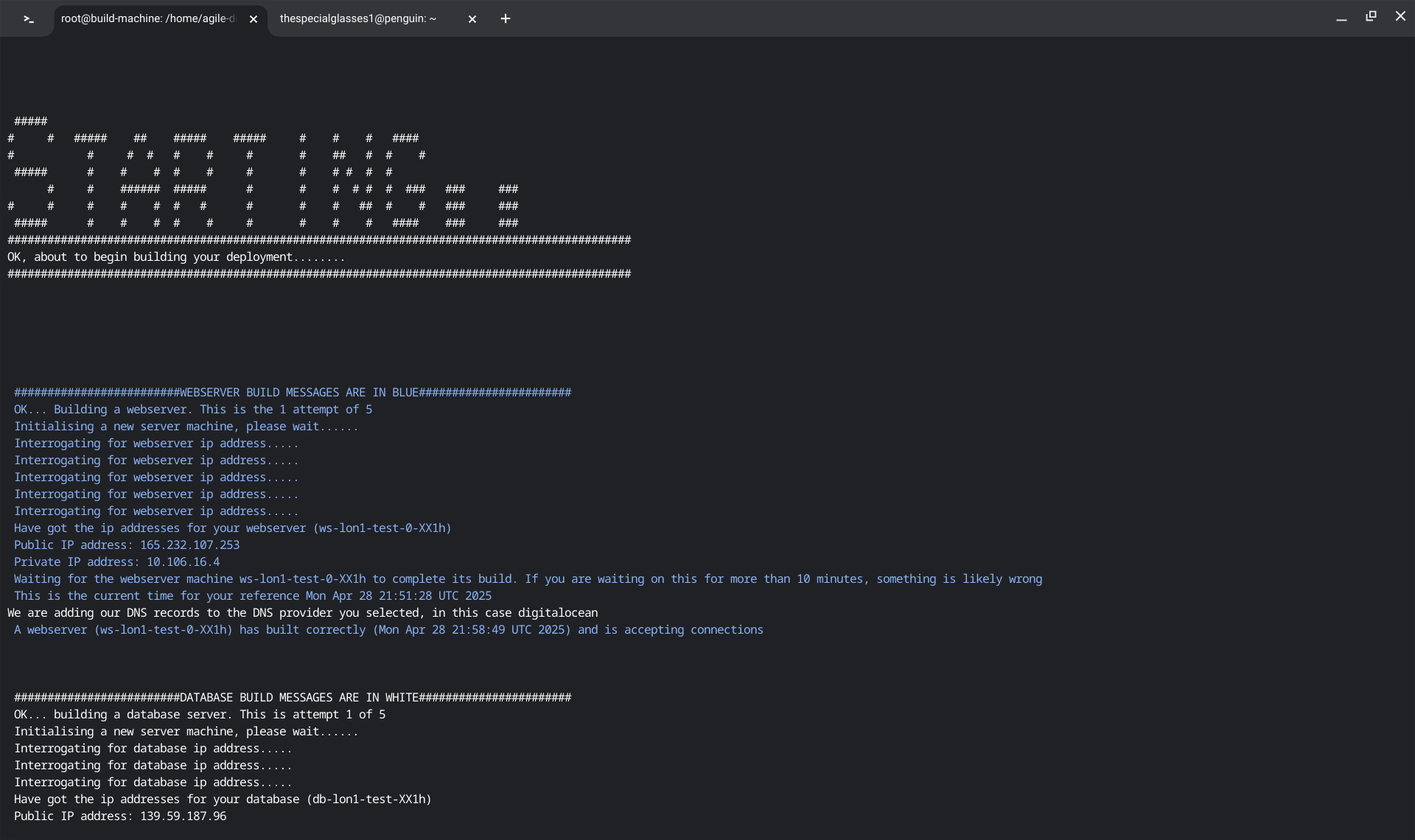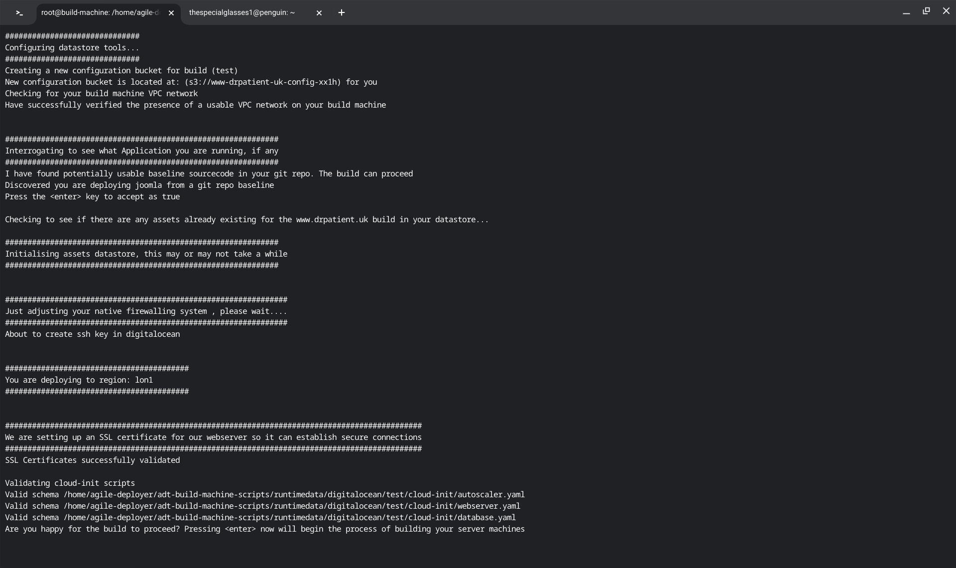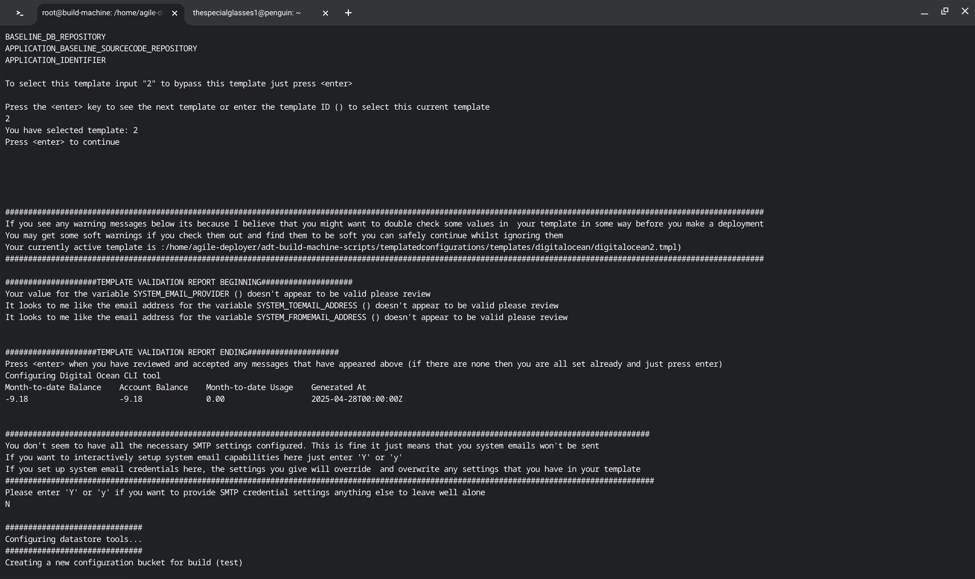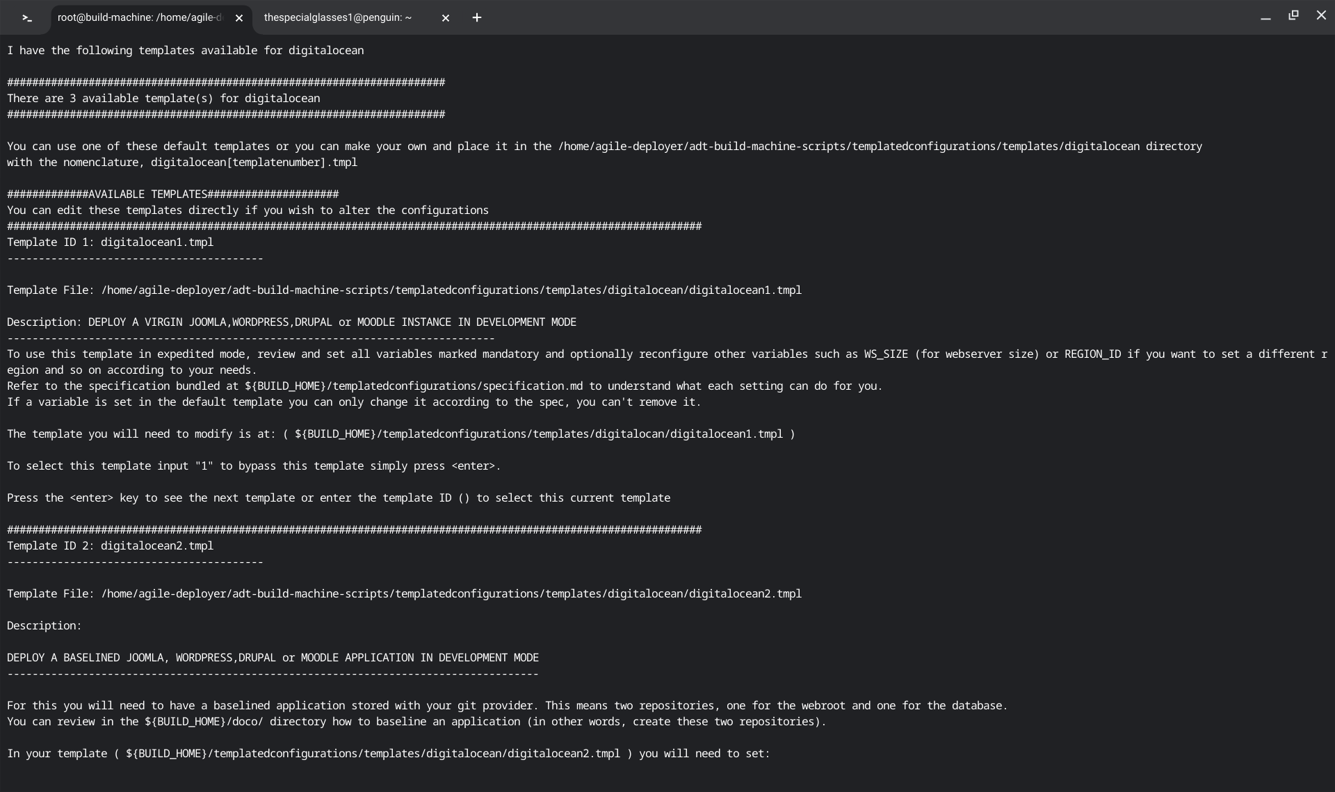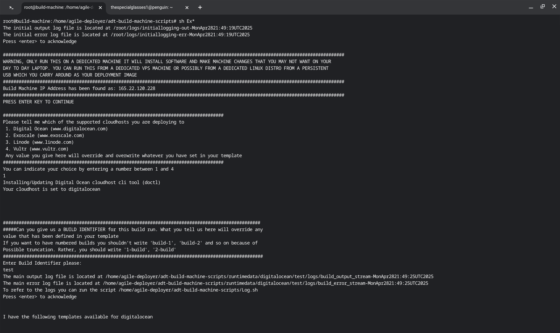 If your template is configured correctly you can now run the build process selecting the appropriate template and cloudhost (digitalocean and template 2 in other words). On your build machine, do as follows: