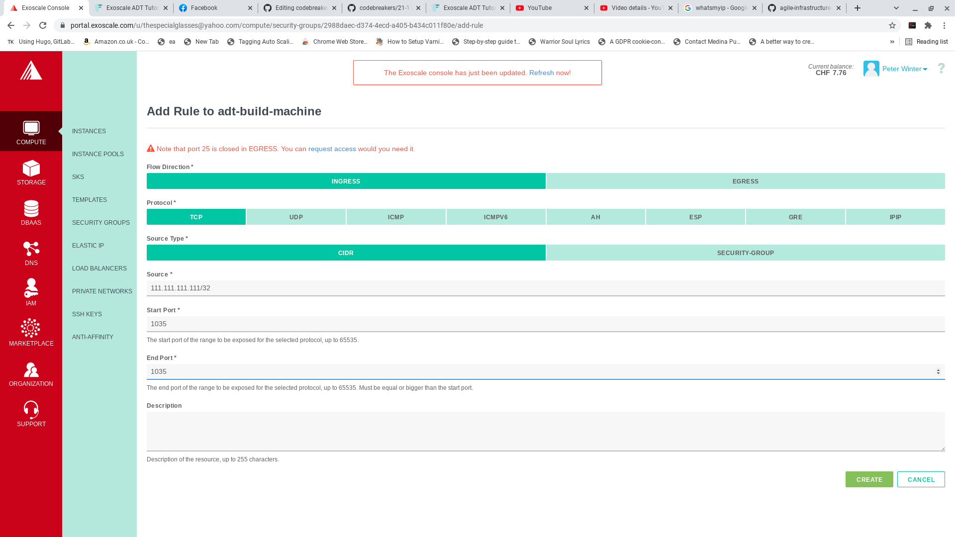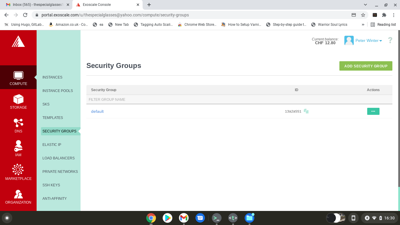 Click on the security groups option of your exoscale GUI