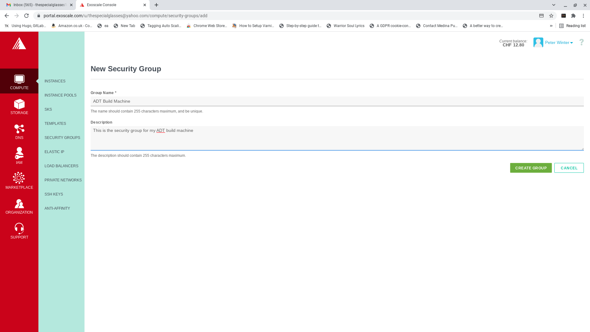 Click "Add Security Group" and call it "adt-build-machine" and click "Create Group"