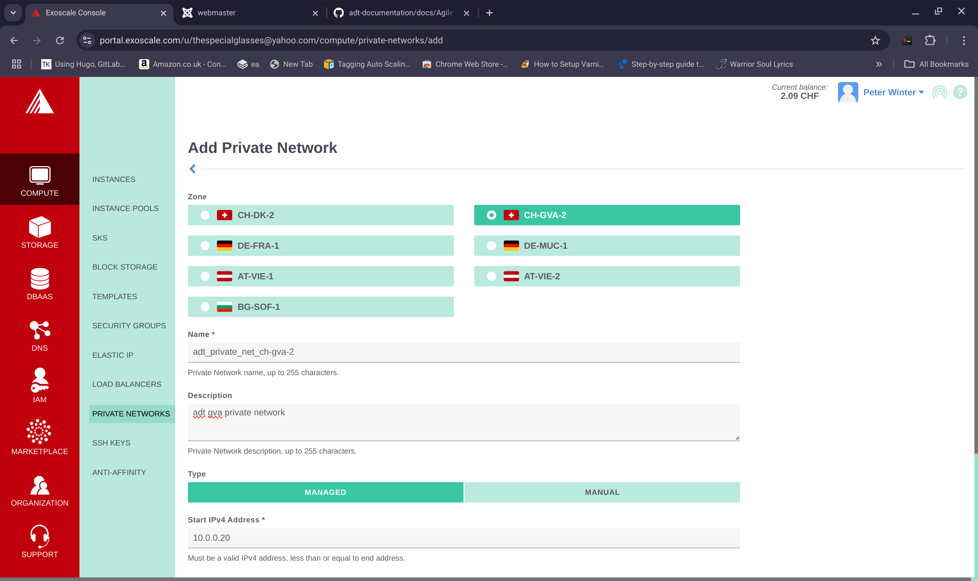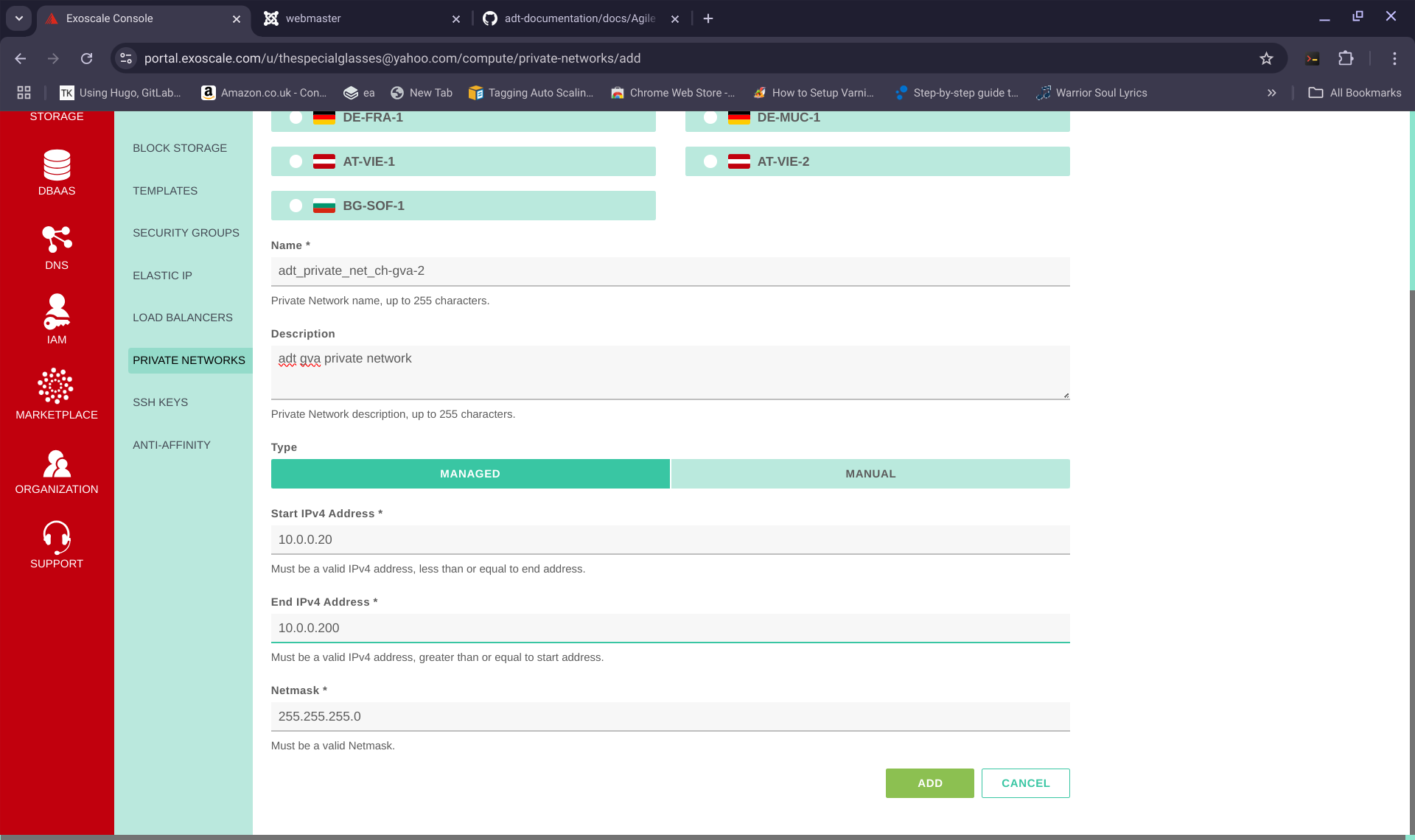 You will need to create a private network called PRECISELY "adt_private_net_ch-gva-2" in the "ch-gva-2" region