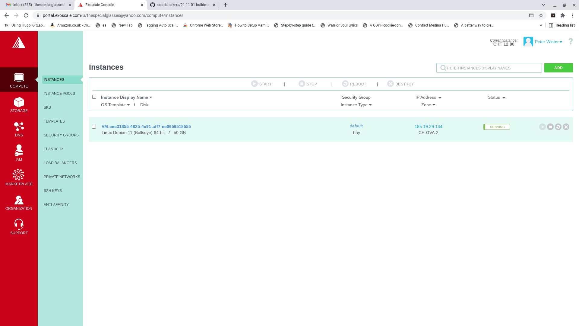 Discover what the machine's IP address is by looking at the Exoscale GUI system for the IP address of the build machine - In this case: 185.19.29.134