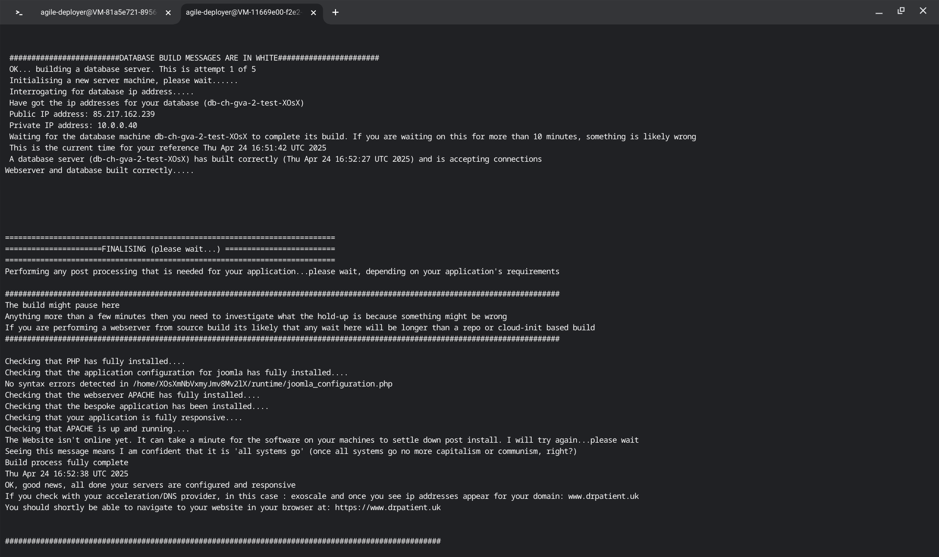 If you follow these steps, then, you will have a copy of your community builder customised Joomla application running on exoscale. When I went to my url www.drpatient.uk, this is what I saw, the baselined version of community builder running:
