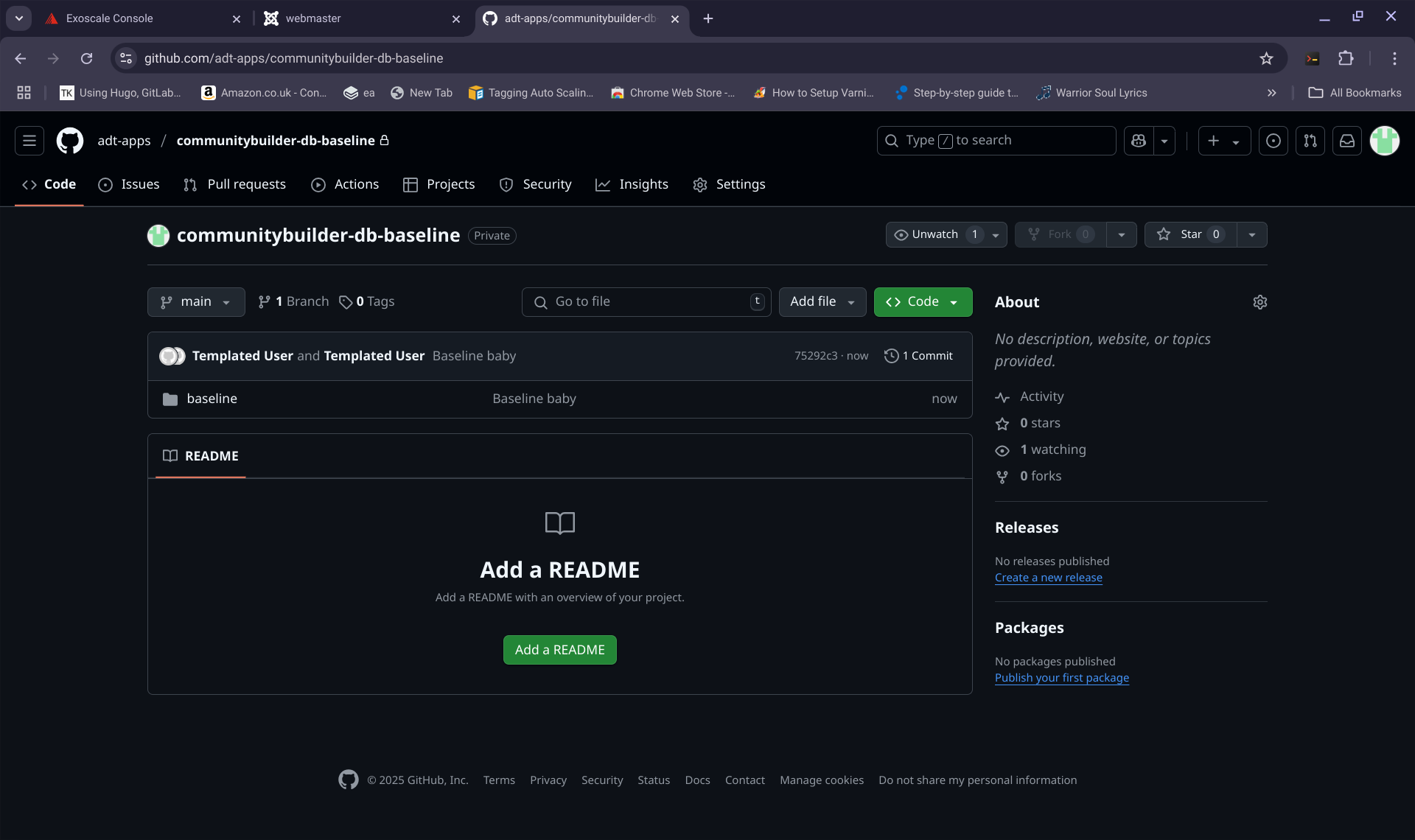 Take 5 minutes to install Community Builder onto your new Joomla application. Once you are happy with what you have built, you need to make a baseline of it. The baseline will be written the github account that your template is set to use, in my example, it is my "adt-apps" github account yours will be something different.
