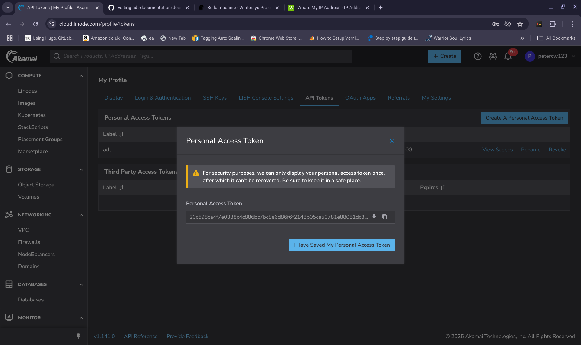 In production use you should use the principle of least privileges and have one key for DNS and one key for compute but here we will generate a single personal access token with ability to manipulate DNS records as well as compute and use the same key for both but in production you should have one PAT that just has DNS scope and one key which has scope for all your other needs.
