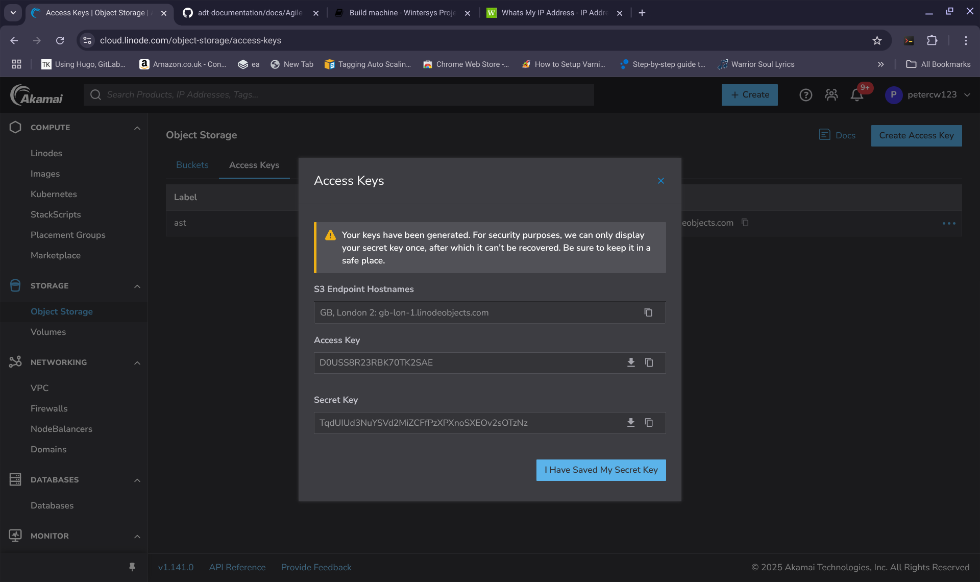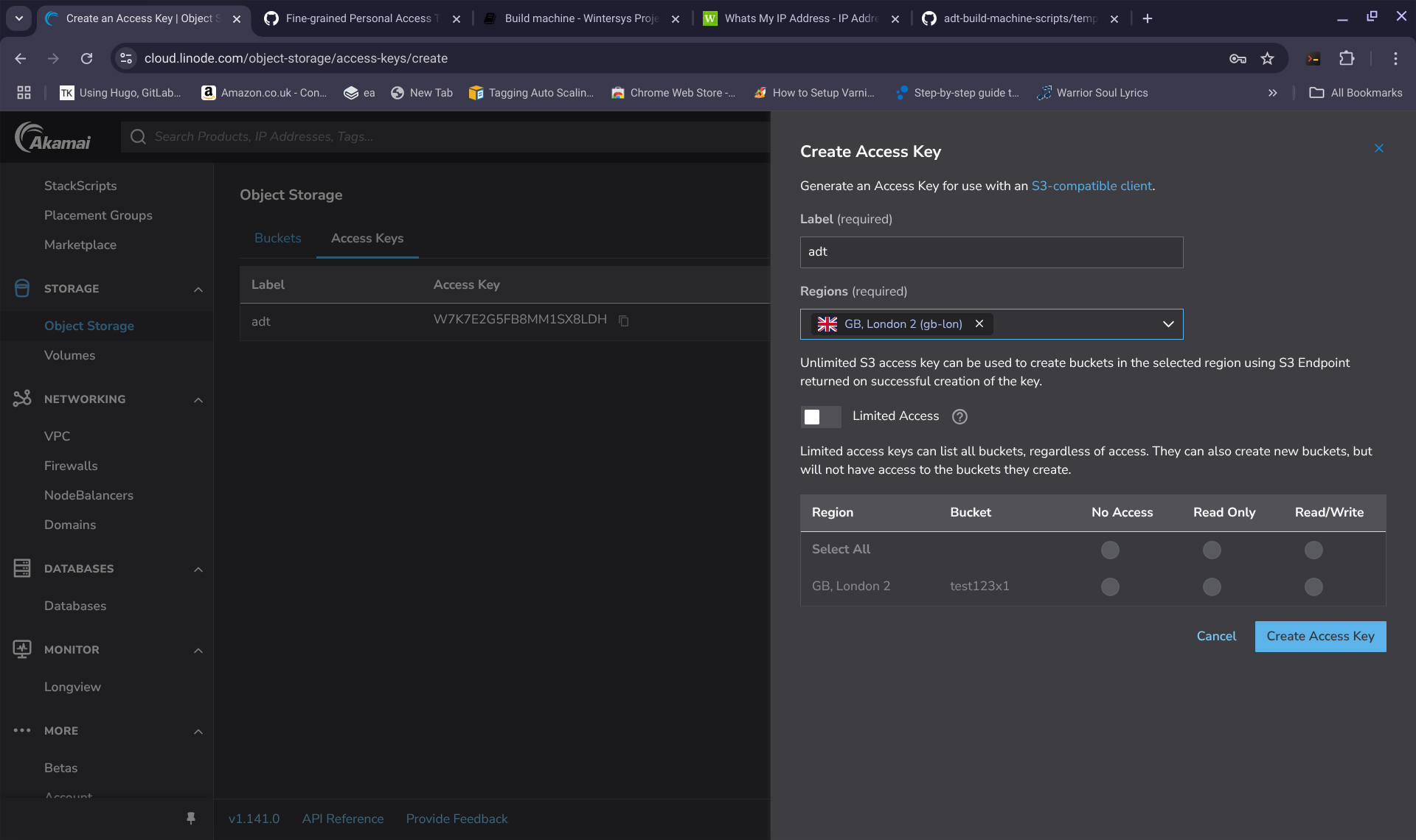 Create access keys with UNLIMITED access to your current region (gb-lon)