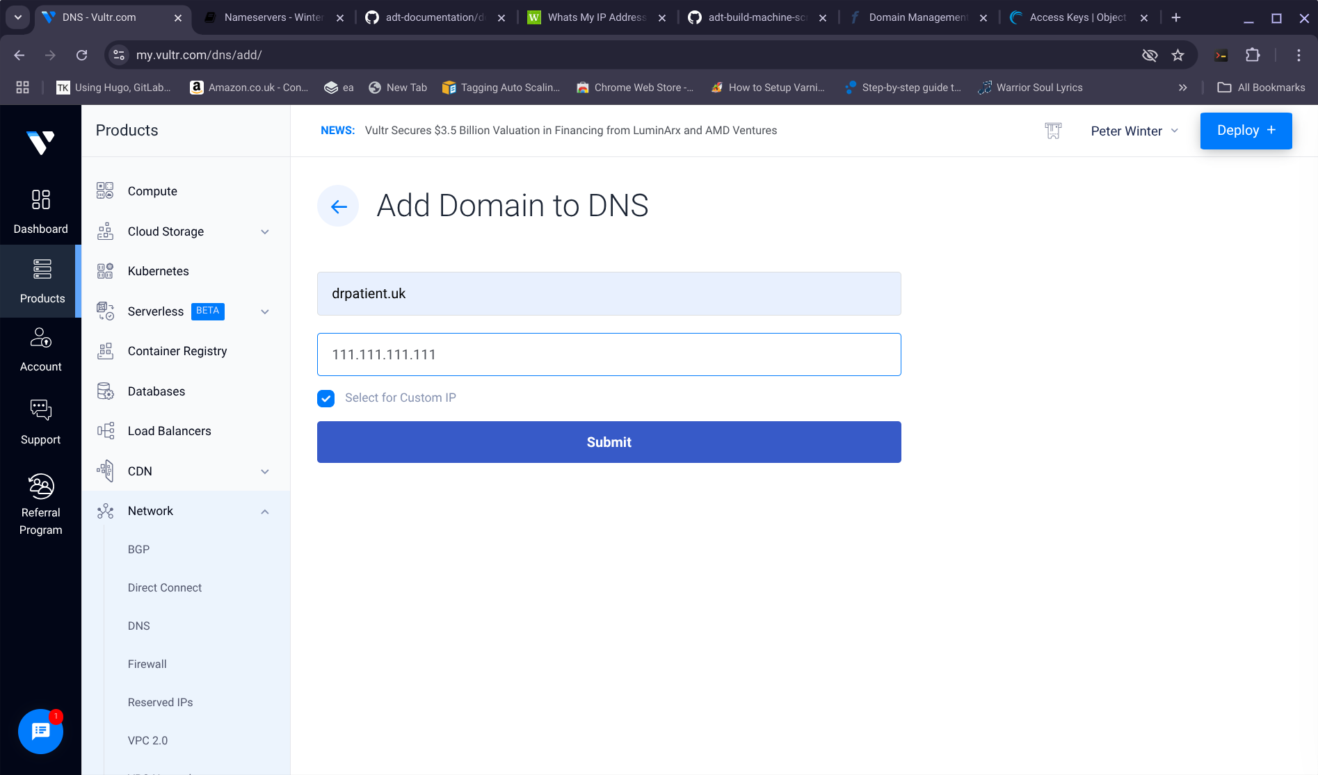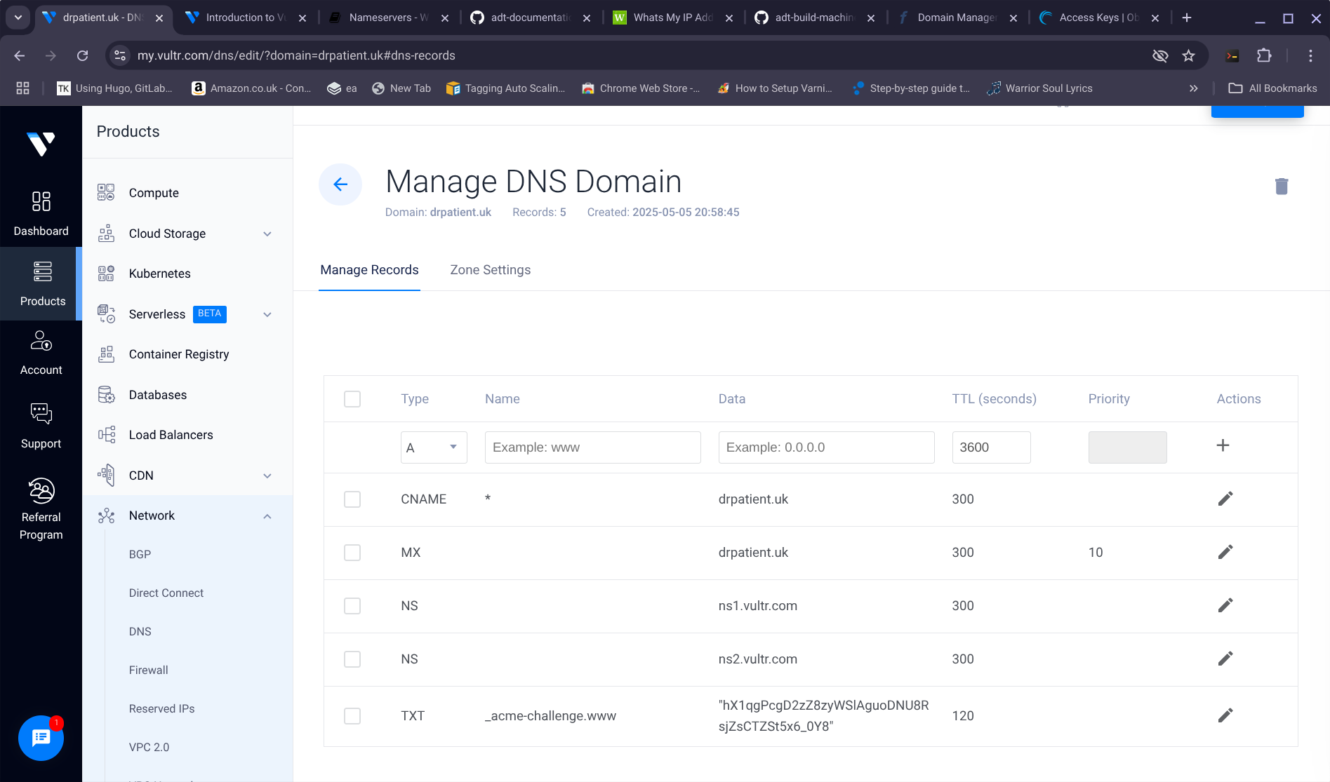 You then need the url that you want to use for your website. If you don't have a DNS URL for your website, you need to purchase one and set the nameservers to vultr as described here
